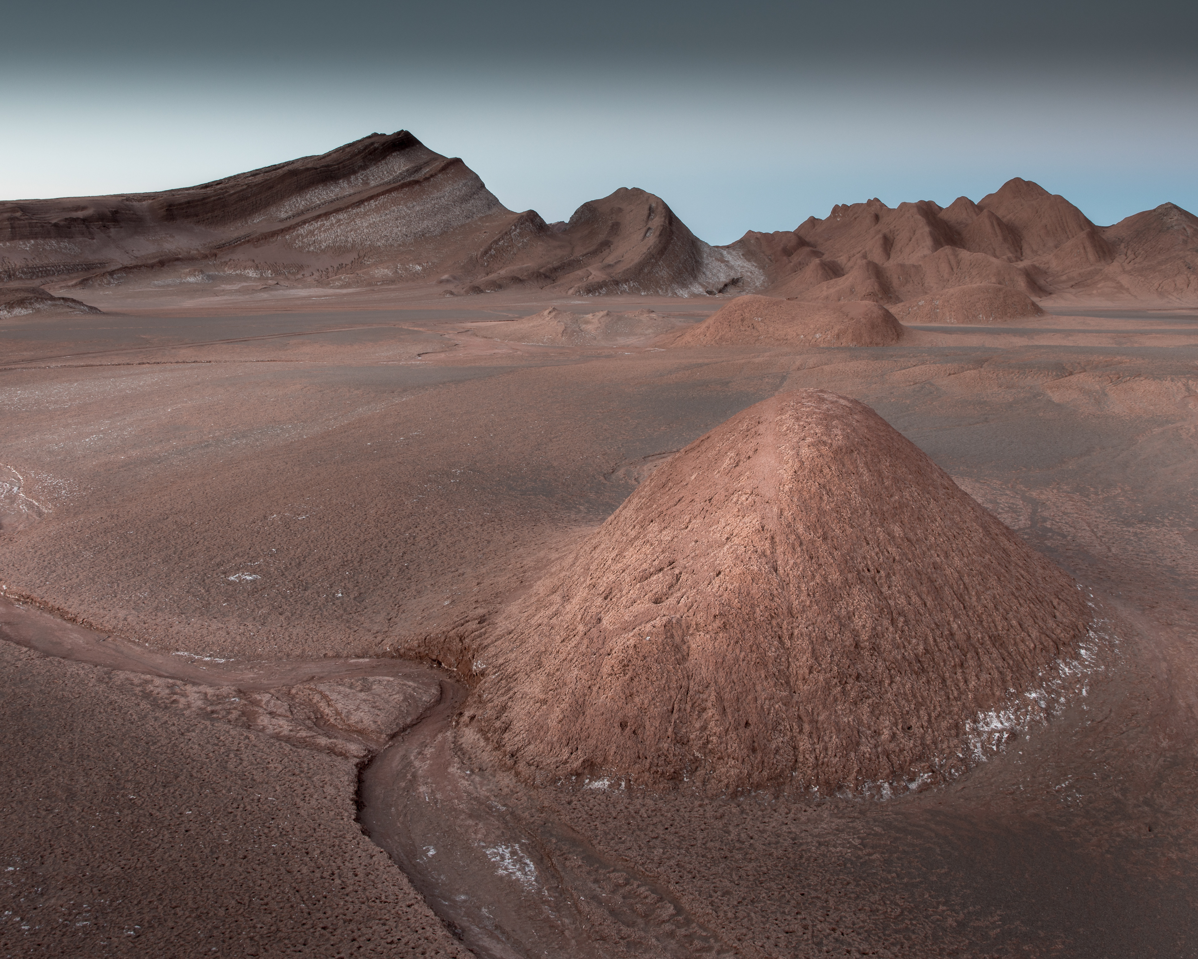 I've mentioned the winds of Atacama. Wind carries eroded particles for miles and miles and finally deposits them. The deposits can be in amongst other geological features that interrupt the flow of wind enough to cause the particles to drop out. This image was captured pre-dawn.
