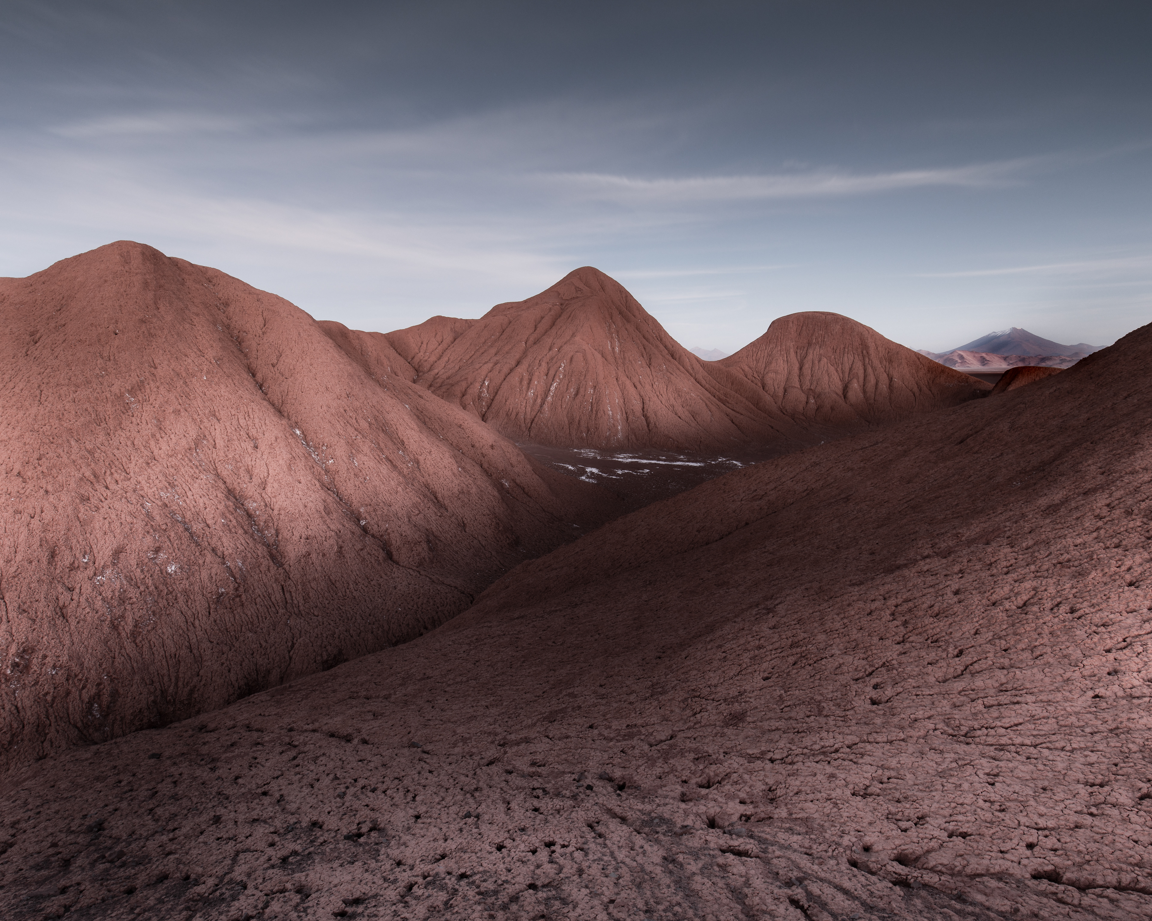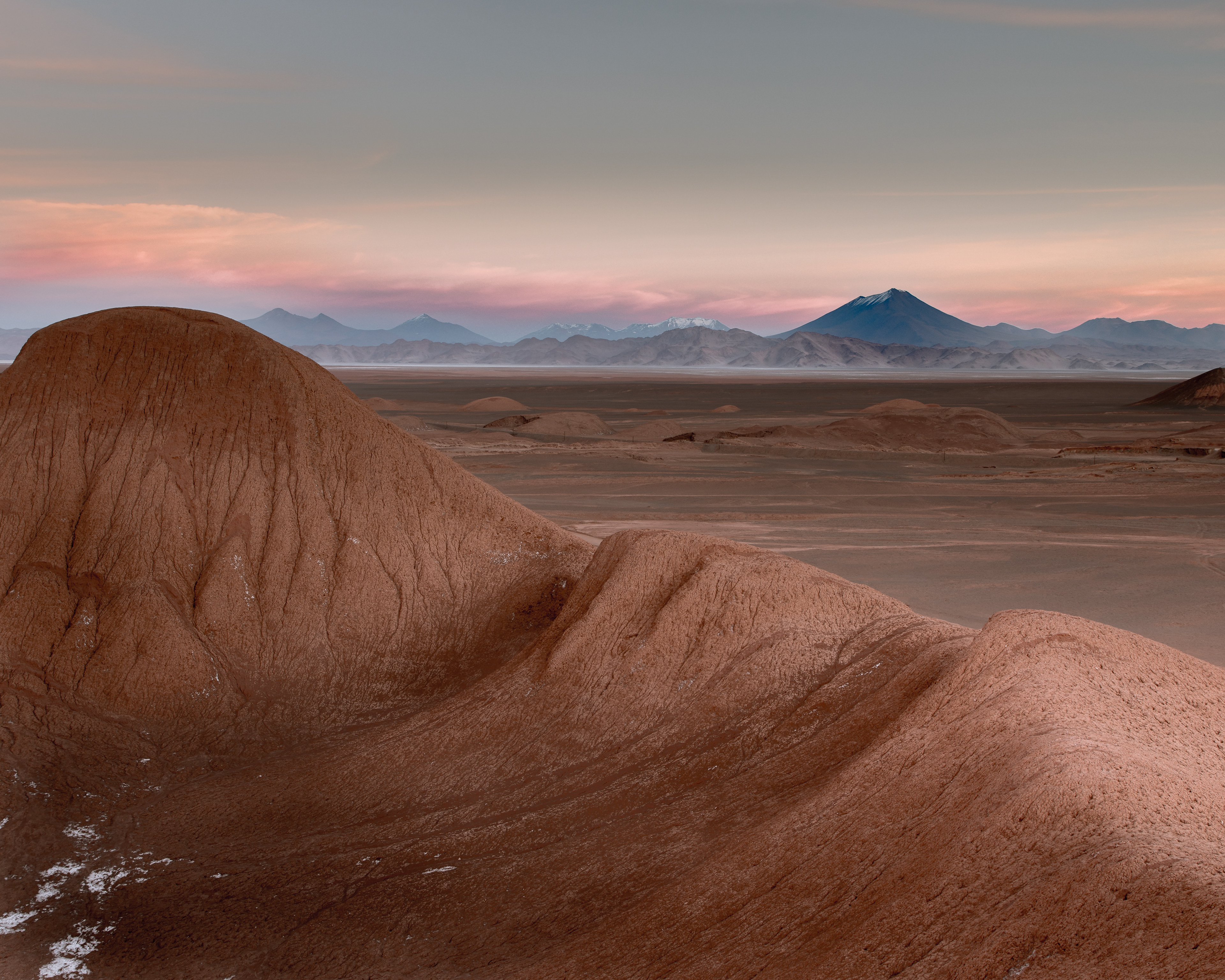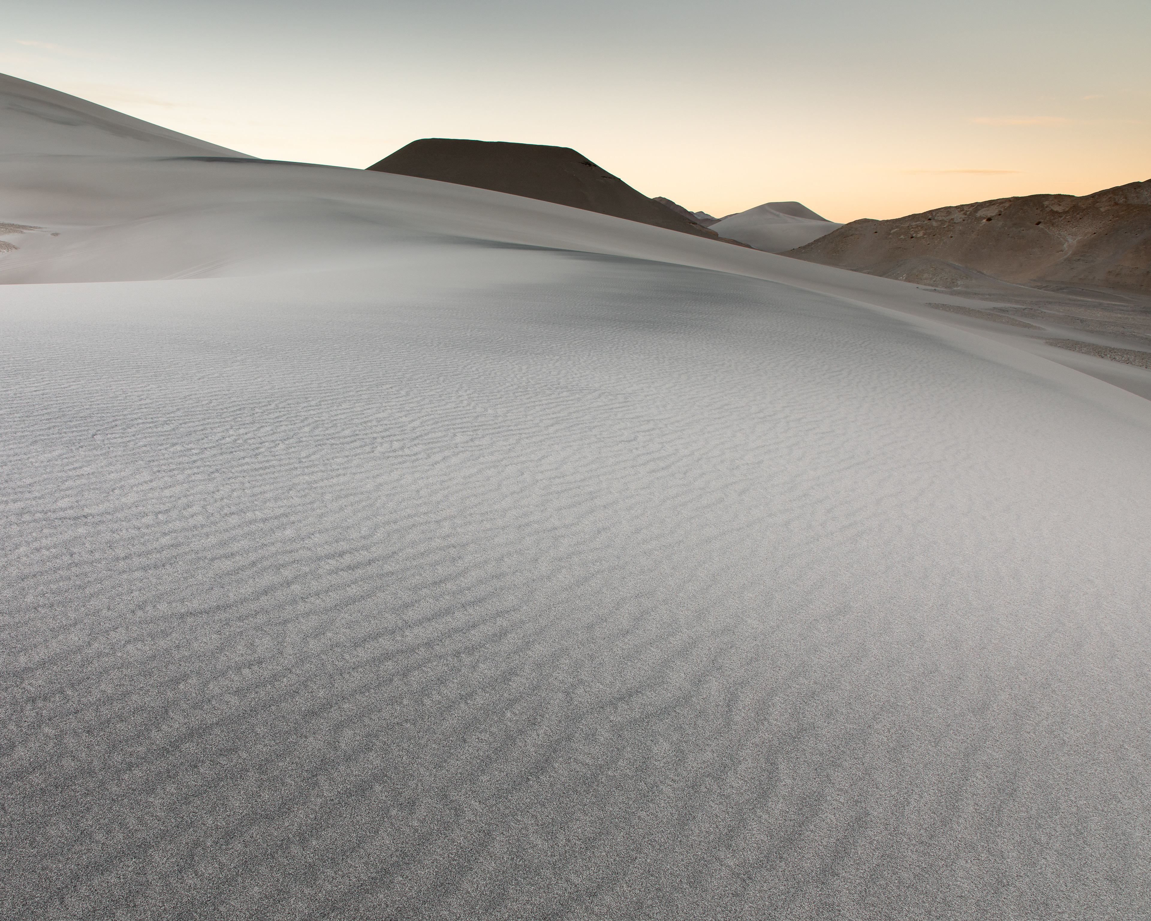Wind erosion is massive in the Atacama. Eroded particles carry for miles and miles until finally deposited in these dune formations. This image was captured just as the sun cast its first light over this mound which I would guess to be about 200 feet high. This is a 2:1 image which would make a beautiful panoramic print.