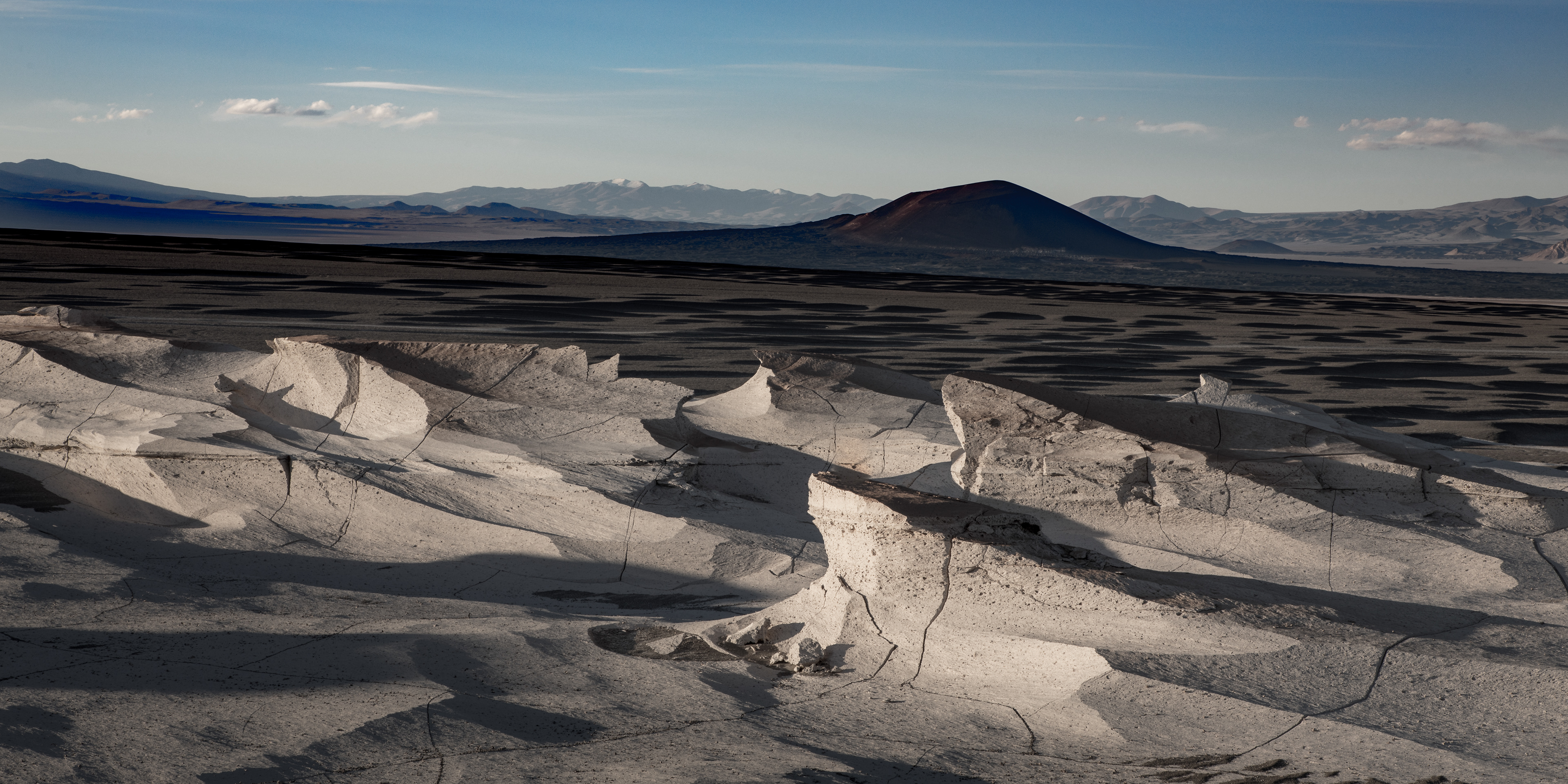 Cono de Arita is an isolated natural formation approximately 110 meters high (about the height of a 30 story building) rising out of the Salar de Arizaro. This is the 6th largest salt flat in the world. Here, the sun is setting to the left. The cone is therefore side lit which highlights its inexplicable perfect shape.