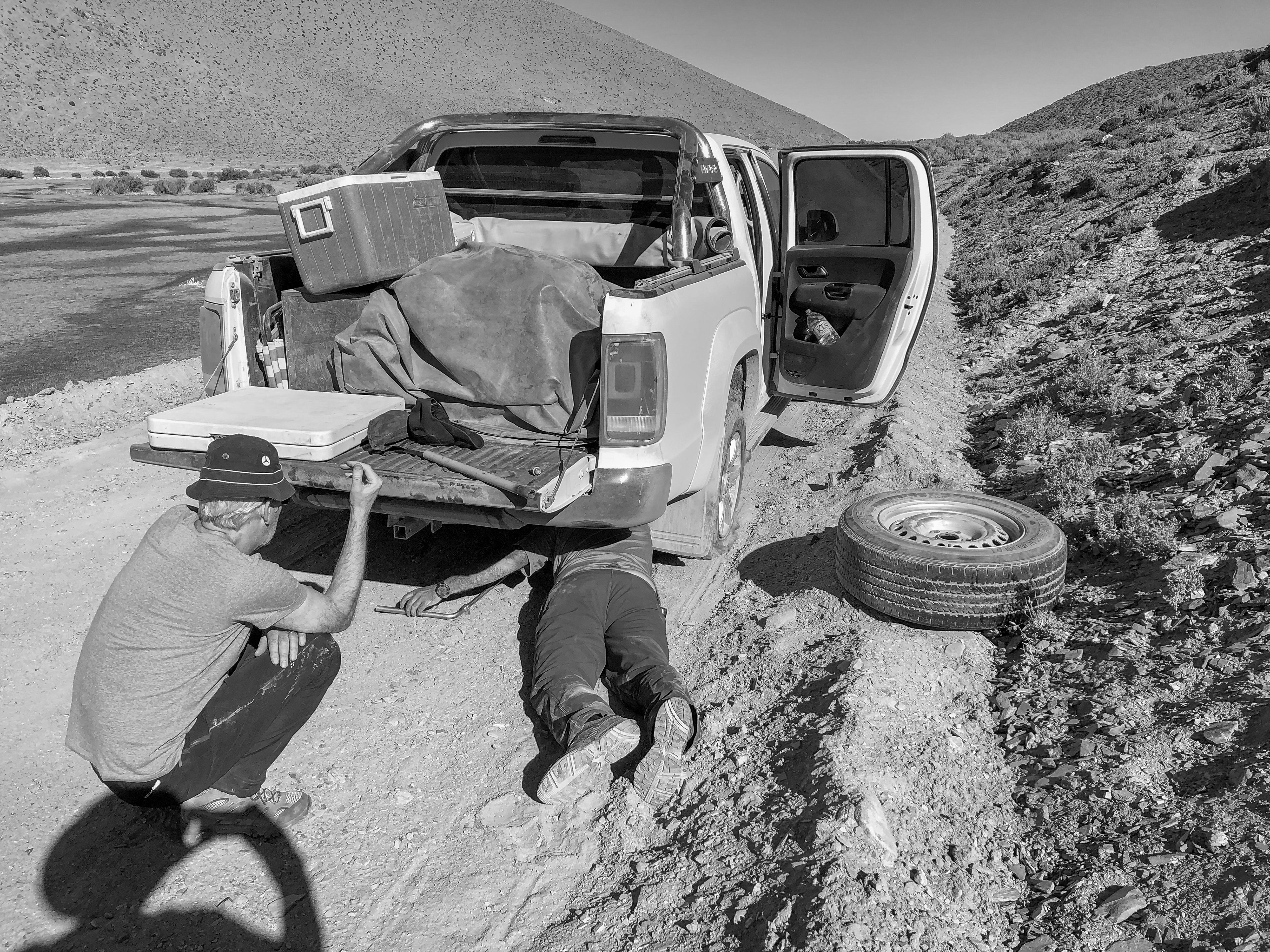 We didn't have a lot of mechanical breakdowns, but it does happen. The tire was a complete blowout punctured by a sharp rock.