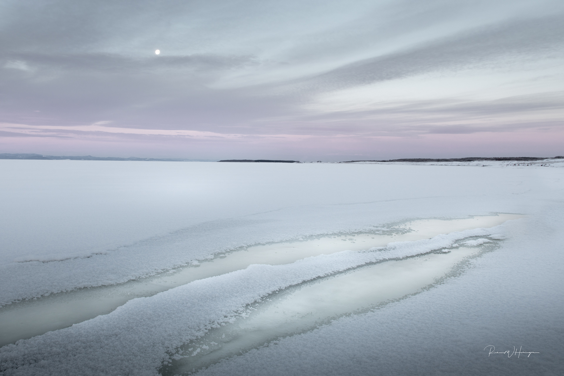 This photo was taken on the shore of Lake Kusharro in Hokkaido, Japan. It's entitled "Tempest" because literally the wind was howling. No idea how fast, but high enough I had to weigh down my tripod to keep it from vibrating. The snow was blowing right to left, almost horizontally. In Kansas we call this a blizzard!