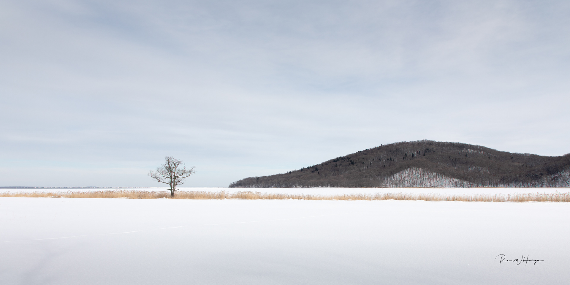 These rolling hills and pasture land are very distinctive and beautiful in winter. They are located near the town of Teshikaga in the subprefecture of Kussharo. Again, these are agricultural lands, but without many trees, the landscape is windblown.