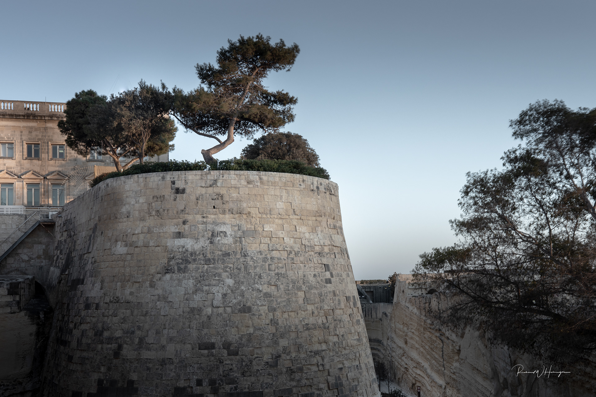 Perhaps one of the most fortified cities in the world, the very purpose for building Valletta was to create a combination of normal neighborhoods within unprecedented military protection. The fortifications surround the city entirely, but as a peninsula, the line that connected the peninsula to the rest of the island was of considerable importance. A deep ditch was cut across to make crossing nearly impossible. Bastions were built to provide a defensive vantage point. This one is stands near the City Gate to Valletta.