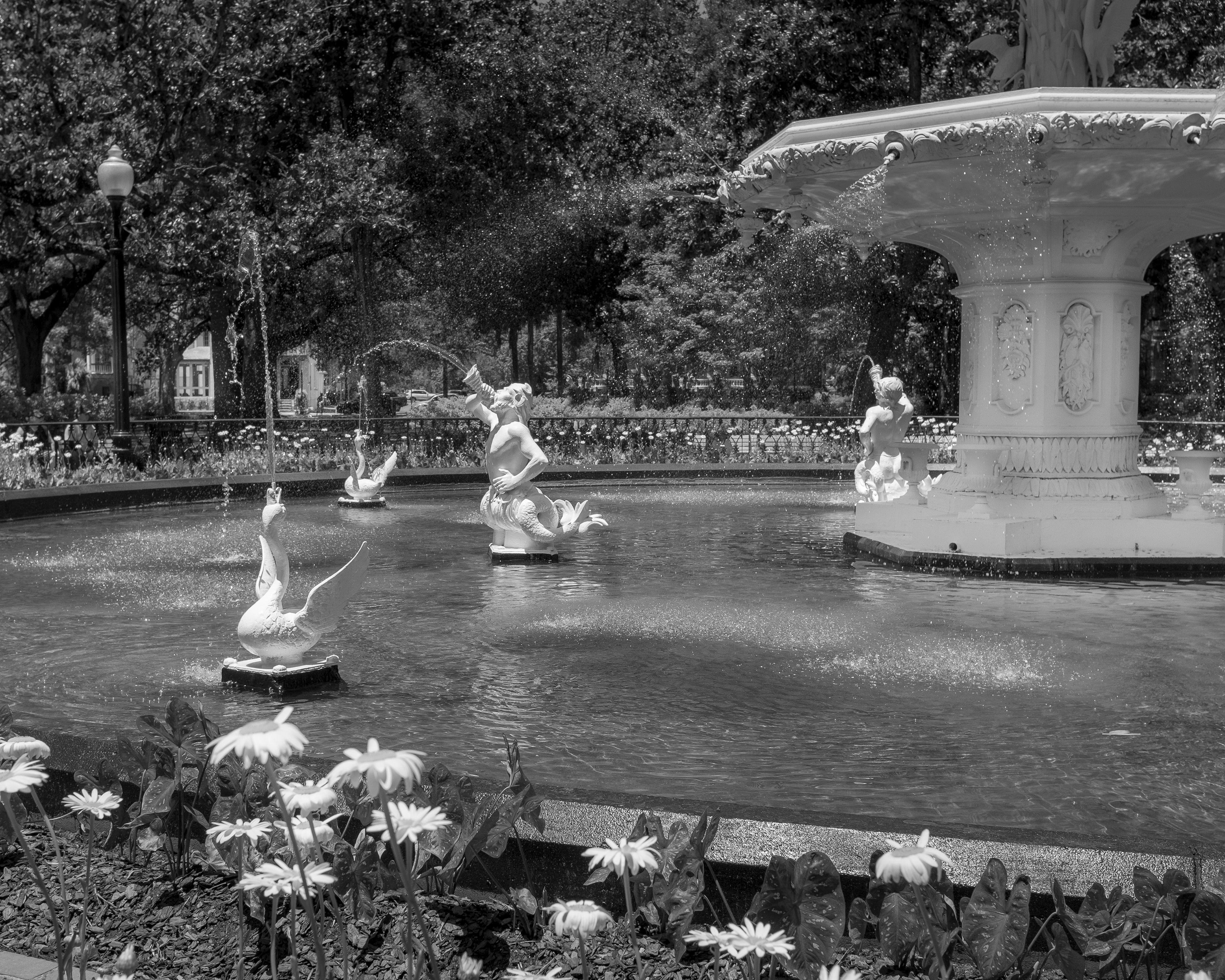 Forsyth Park is a large city park that occupies 30 acres in the historic district. It contains walking paths, a cafe, a children's place area, a Fragrant Garden for the Blind, and many other interesting amenities. Centrally located is this iconic landmark, the Forsyth Park Fountain.