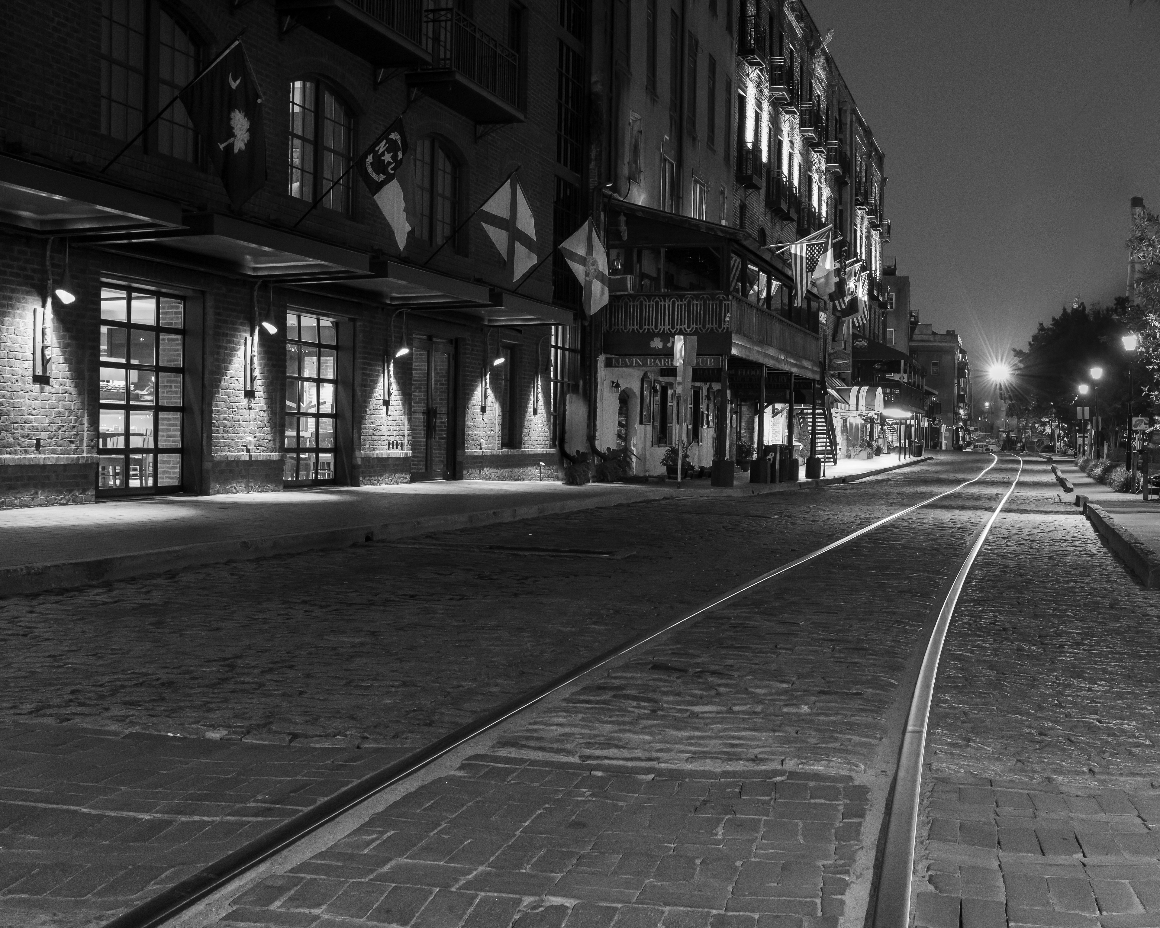 West River Street. This street follows the rivers edge, along which much of the storied commerce of Savannah took place.