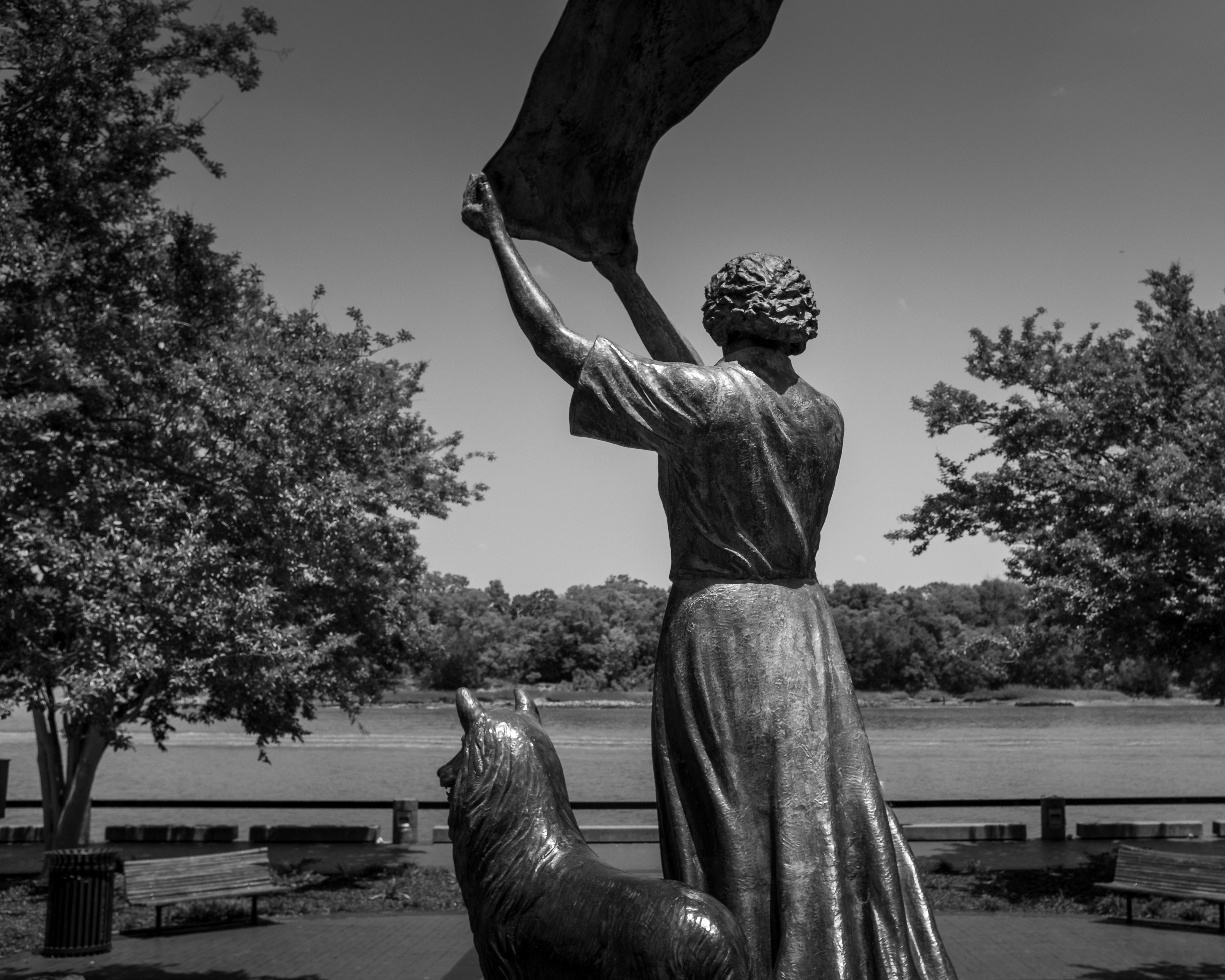 "The Waving Girl" - Florence Martus (1868–1943), also known as "the Waving Girl", took it upon herself to be the unofficial greeter of all ships that entered and left the port of Savannah between 1887 and 1931. A few years after she began waving at passing sailors, she moved in with her brother, a light keeper, at his small white cottage about five miles up the river from Fort Pulaski. From her rustic home Martus would wave a handkerchief by day and a lantern by night. According to legend, not a ship was missed in her forty-four years on watch. This is a statue of Martus.