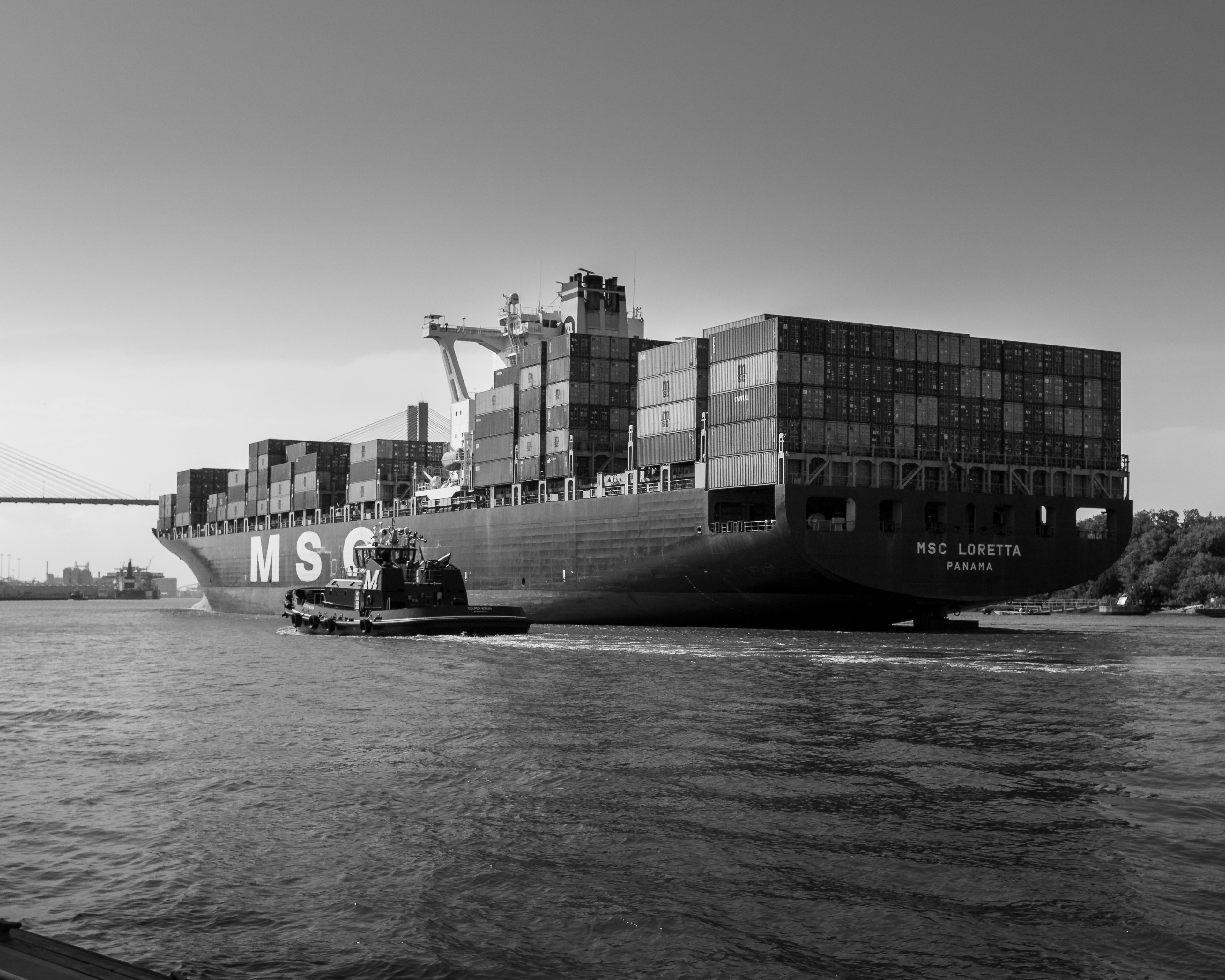 Although, not of the Panamax Class, the MSC Loretta is another big one. They do manage to clear the Savannah bridge, but need to pass only at low tide.