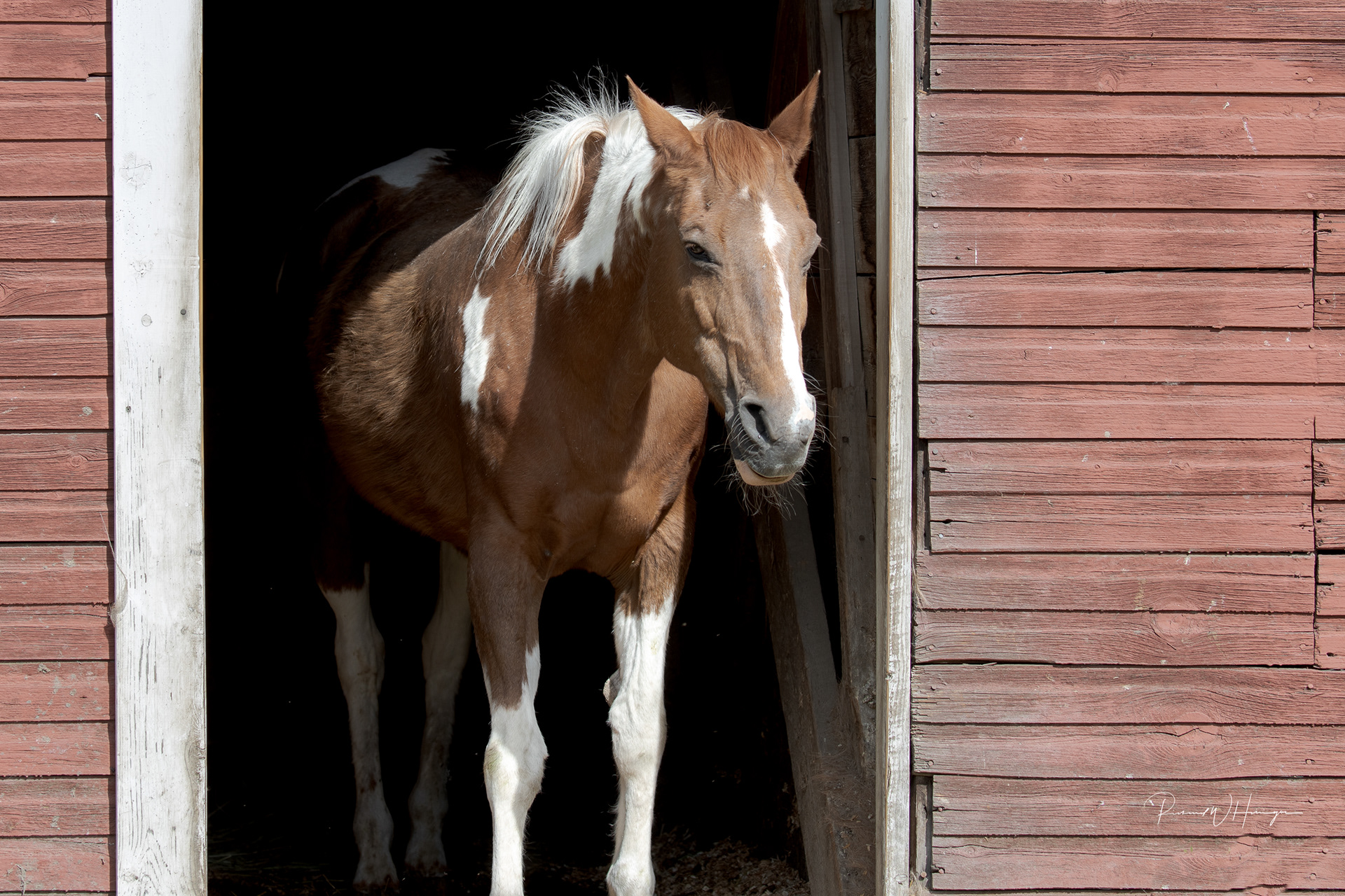 Fallon has his own barn. He's the only one remaining since the time when there would have been many horses boarding here. Today he passes time by welcoming visitors sociably at the door.