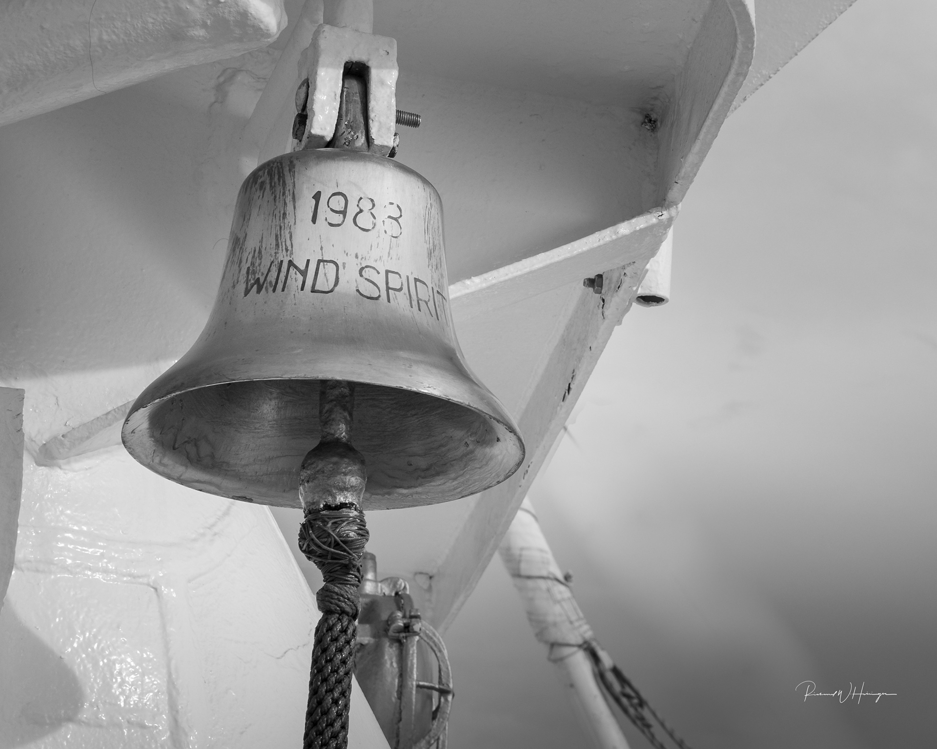 The ship's bell is perhaps one of the most time honored accutrements of any vessel. It is required equipment, even though it isn't used as much in modern times. It is usually made from brass or bronze and has the name of the vessel and the construction date engraved. They were used to indicate time, particularly at watch changes. Unlike civil bells that strike the number of each hour, a ship's bell has only 8 instead of 12 to indicate time. The bell is also used when underway in dense fog to alert other vessels of the presence.